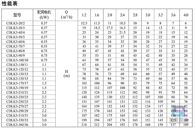 產品介紹 一、概述 CDLK3-270/27浸入式多級離心泵為安裝標準電機 為滿足水槽或容器的安裝深度,可安裝空腔體來改變泵本身的長度,不同的級數長度見尺寸和重量表和可供產品范圍表。 二、應用范圍 CDLK3-270/27液下式多級離心泵用于輸送機床冷卻液、潤滑液、冷凝水輸送、工業清洗設備和其它適合浸入式泵使用的場合,適合于不同溫度、流量和壓力范圍,CDLK適用于無腐蝕性液體,CDLKF適于輕度腐蝕性液體。 具體用于電火花、車床、磨床、加工中心、冷卻裝置、工業清洗設備、過濾系統等。 三、電機 電機為全封閉,風冷式二極標準電機。 防護等級:IP55 絕緣等級:F 標準電壓:50HZ:1*220-230/240V 3*200/346V 3*220-240/380-415V 3*220-225/380-440V 其他電壓的電機按要求可供。 單相電壓從0.37-2.2kw可供。 四、運行條件 適用于稀薄、干凈、不含固體顆粒和纖維的非易爆液體,可輸送水及冷卻用水溶液和切割潤滑液。 液體溫度:常溫型-15℃~+70℃ 熱水型+70℃~+120℃ ![]() ![]() 因產品生產批次、型號不同,產品圖片及安裝尺寸僅供參考,詳情可聯系我們的銷售人員了解更多CDLK3-270/27浸入式多級離心泵相關信息!