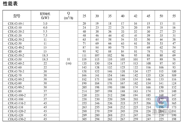 產(chǎn)品介紹 CDLF42-20FSWSC輕型不銹鋼多級(jí)離心泵 是一種多功能產(chǎn)品,可以輸送從自來(lái)水到工業(yè)液體的各種不同介質(zhì),適應(yīng)于不同溫度、流量和壓力范圍,CDL不銹鋼多級(jí)泵適用于無(wú)腐蝕性液體,CDLF適用于輕度腐蝕性液體。 水:水廠過(guò)濾與輸送、水廠分區(qū)送水、主管增壓、高層建筑增壓。 工業(yè)增壓:流程水系統(tǒng)、清洗系統(tǒng)、高壓沖洗系統(tǒng)、消防系統(tǒng)。 工業(yè)液體輸送:冷卻和空調(diào)系統(tǒng)、鍋爐給水和冷凝系統(tǒng)、機(jī)床配套、酸和堿。 水處理:超濾系統(tǒng)、反滲透系統(tǒng)、蒸餾系統(tǒng)、分離器、游泳池。 灌溉:農(nóng)田灌溉、噴灌、滴灌。 運(yùn)行條件 稀薄、干凈、非易燃易爆并不含固體顆粒或纖維的液體。 液體溫度:常溫型 -15℃至+70℃ 熱水型 -15℃至+120℃ 環(huán)境溫度:最高+40℃ 海拔:最高1000m CDLF42-20FSWSC輕型不銹鋼多級(jí)離心泵 為安裝標(biāo)準(zhǔn)電機(jī)的非自吸式多級(jí)離心泵,電機(jī)軸通過(guò)泵頭用軸聯(lián)器直接與泵軸連接,拉桿螺栓將耐壓筒、過(guò)流部件固定在泵頭和進(jìn)出水段之間,泵進(jìn)出水口在泵底同一直線上;這款管道泵可根據(jù)需要配置智能保護(hù)器,對(duì)泵干轉(zhuǎn)、缺相、過(guò)載等進(jìn)行有效保護(hù)。 電機(jī) 電機(jī)為全封閉,風(fēng)冷式二極標(biāo)準(zhǔn)電機(jī)。 防護(hù)等級(jí):IP55 絕緣等級(jí):F 標(biāo)準(zhǔn)電壓, 50Hz 因產(chǎn)品生產(chǎn)批次、型號(hào)不同,產(chǎn)品圖片及安裝尺寸僅供參考,詳情可聯(lián)系我們的銷售人員了解更多CDLF42-20FSWSC輕型立式多級(jí)離心泵相關(guān)信息!