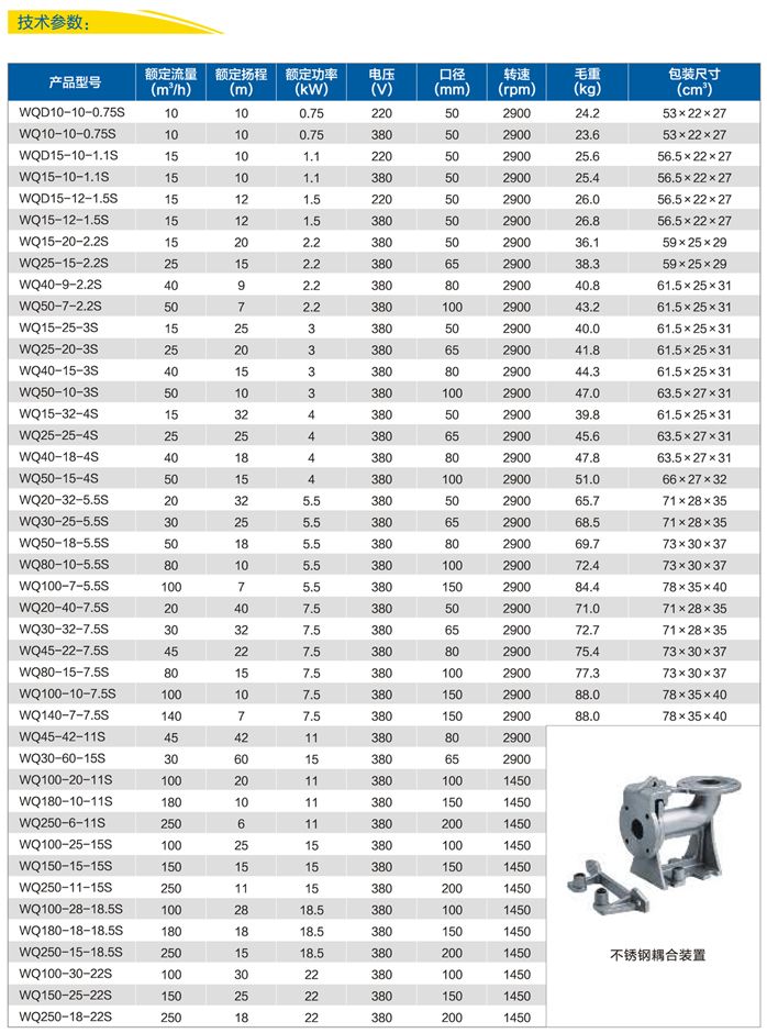 | 不銹鋼防爆潛水排污泵QWP80-40-7-2.2 | ||||||||||||||||