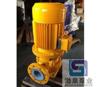 GBF50-200立式襯氟管道泵具有特強的耐腐蝕性能,可替代316L不銹鋼、鈦合金等貴金屬,而且高笑節能、噪音低、性能可靠等優點。 二、產品特點: 1、泵為立式結構,進出口口徑相同,且位于同一中心線上,如加上防護罩則可置于戶外使用。 2、葉輪直接安在電機軸承配置合理,能有效地平衡泵運轉產生的徑向和軸向負荷,從而保證了泵的運行平衡,振動噪音很低。 3、軸封采用普通型和耐顆粒型的機械密封和機械密封組合,耐磨耐腐,能有效地增長機械密封的使用壽命。 4、可根據使用要求即流量和揚程的需要采用泵的串、并聯運行方式。
